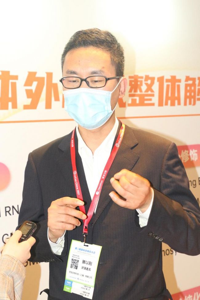 翌圣生物科技(上海)有限公司首席科學家滕以剛博士受邀作為大會講演嘉賓,為大家?guī)碇黝}為《如何生產高品質mRNA藥物原料》的學術報告,參會觀眾反應熱烈,積極提問,與滕博士進行深入探討與交流。本站記者有幸參觀了翌圣生物展臺并對滕博士進行專訪。