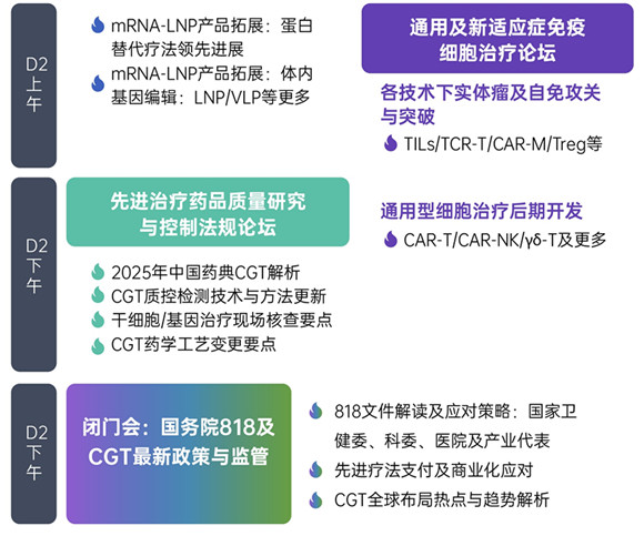 本屆大會(huì)以 “新政啟航,合規(guī)賦能,共筑先進(jìn)療法創(chuàng)新轉(zhuǎn)化通路” 為主題,設(shè)立涵蓋體內(nèi)細(xì)胞、免疫細(xì)胞、干細(xì)胞與外泌體、RNA藥物、基因治療及質(zhì)量控制法規(guī)的六大平行論壇,全面回應(yīng)從技術(shù)攻堅(jiān)到商業(yè)化落地的核心挑戰(zhàn)。