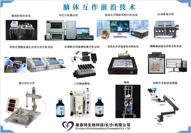 由人類重大疾病動物模型研究湖南省重點實驗室與康森特生物科技(長沙)有限公司共同掛牌成立的“腦體互作研究神經藥效評價實驗室”,涵蓋生物活體內小分子實時動態(tài)物質分析檢測、生物電信號記錄分析、活體外周組織光電調控等多個神經科學的前沿研究技術。歡迎廣大科研工作者前來長沙交流探討。
