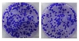 采用SPSS 16.0統(tǒng)計軟件進行數(shù)據(jù)分析,柱狀圖結(jié)果分析; 軟瓊脂細(xì)胞克隆形成實驗結(jié)果圖片