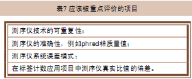 目前,序列質(zhì)量評分問題是受到廣泛關(guān)注的一個問題。造成這種現(xiàn)象的原因主要是因為所有新一代測序儀的測序質(zhì)量都不高,而且不同的序列情況都有各自的誤差率。隨著新一代測序儀產(chǎn)品的不斷成熟,在臨床及科研工作中的應(yīng)用范圍越來越廣,它們的測序質(zhì)量也就變得重要起來,而且我們也需要對各個測序儀的測序質(zhì)量有一個清晰的、可靠的評價標準。由于這個問題還只是剛剛出現(xiàn),所以我們有機會設(shè)立一個全球統(tǒng)一的、標準化的評價體系對目前現(xiàn)有的以及將來即將出現(xiàn)的測序儀進行評價。我們希望避免再次發(fā)生類似過去幾個芯片廠家之間進行數(shù)據(jù)比較的尷尬局面。對于測序儀的應(yīng)用范圍進行標準化的質(zhì)量評價也是有好處的。比如評價從頭測序的質(zhì)量、評價測序結(jié)果與參考序列的相似度、評價測序儀發(fā)現(xiàn)突變以及多態(tài)性的能力以及對測序儀在進行大規(guī)模測序項目研究時的質(zhì)量可靠性進行評價等。表7列出了幾項應(yīng)該被重點評價的項目。
