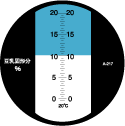 2) 透過棱鏡讀出測(cè)量值. 標(biāo)尺上藍(lán)色與白色的境界線就是測(cè)量值.(%) |