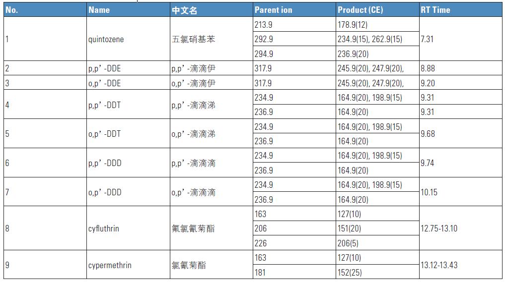 TSQ Quantum XLS;有機氯農藥;擬除蟲菊酯類農藥。