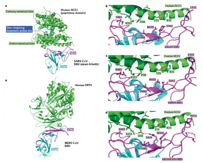 圖3 SARS- CoV和MERS- CoV的受體識(shí)別(引自Jie Cui et al 2019)