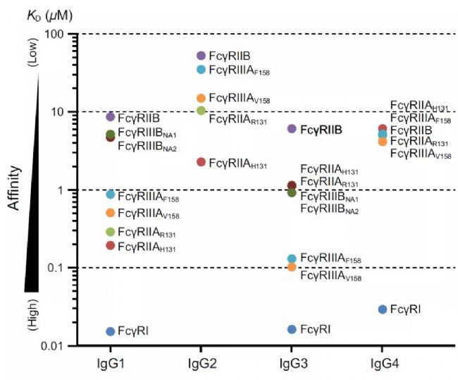 IgG亞型和FcγR親和力(文獻1)