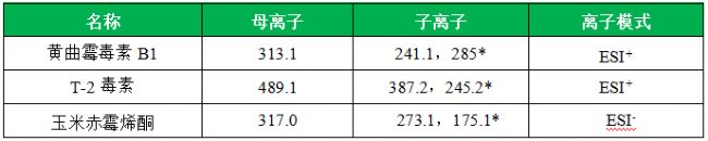 本實驗參考標(biāo)準(zhǔn)NY/T 2071-2011,對樣品進(jìn)行提取,采用226多功能凈化柱進(jìn)行凈化處理,建立了液相色譜-串聯(lián)質(zhì)譜檢測飼料中黃曲霉毒素B1、玉米赤霉烯酮和T-2毒素的方法。
