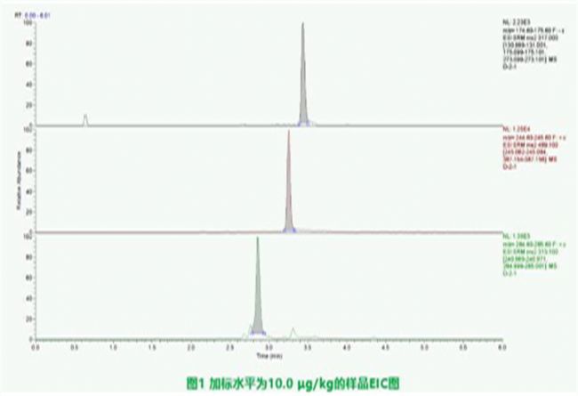 將同種類基質(zhì)空白樣品按樣品提取和樣品凈化步驟進(jìn)行提取、凈化,分別吸取一定量的混合標(biāo)準(zhǔn)溶液,添加到空白樣品凈化提取液中。