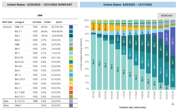 XBB是奧密克戎BA.2衍生的2個(gè)變異株,重組而成的毒株。2022年8月,它首先在印度被發(fā)現(xiàn),9月被科學(xué)家命名。它主要表現(xiàn)的特點(diǎn),是免疫逃逸的能力增加。目前,XBB進(jìn)一步演變?yōu)閄BB.1和XBB.1.5。XBB1.5的傳播優(yōu)勢(shì)非常明顯。12月30日,據(jù)美國(guó)疾控中心的數(shù)據(jù)顯示:當(dāng)周,美國(guó)有40.5%的病例都是感染的XBB1.5。