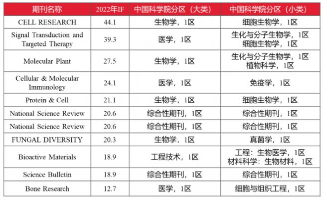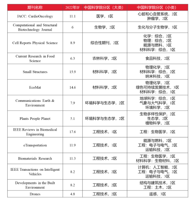 表1. 2022年中國科學(xué)院分區(qū)表中由4區(qū)變?yōu)?區(qū)或者2區(qū)的期刊