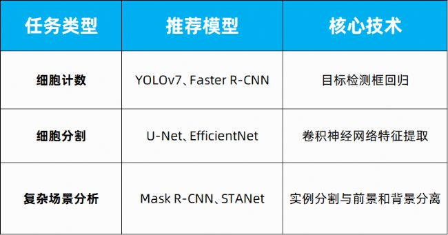 基于具體任務(wù)需求選擇適宜的深度學(xué)習(xí)架構(gòu),針對(duì)細(xì)胞計(jì)數(shù)場(chǎng)景可能涉及目標(biāo)檢測(cè)(如YOLO系列)、圖像分割(如U-Net變體)等核心技術(shù)路線,結(jié)合遷移學(xué)習(xí)策略優(yōu)化模型適應(yīng)性。
