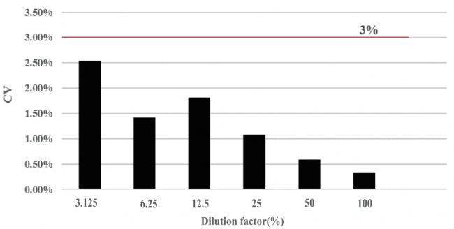 圖:各稀釋濃度下重復(fù)性CV<3%