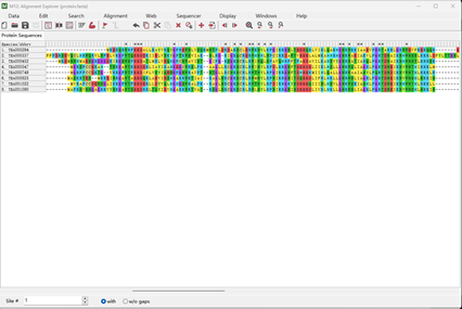 (1)多序列比對(Multiple Sequence Alignment):點(diǎn)擊“Alignment”→“Align by ClustalW”或“Align by MUSCLE”,軟件將快速完成比對。