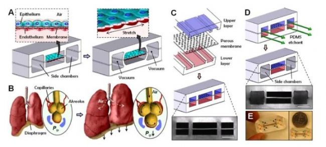 [2] Huh D, Matthews BD, Mammoto A, Montoya-Zavala M, Hsin HY, Ingber DE. Reconstituting organ-level lung functions on a chip. Science. 2010 Jun 25;328(5986):1662-8. doi: 10.1126/science.1188302.