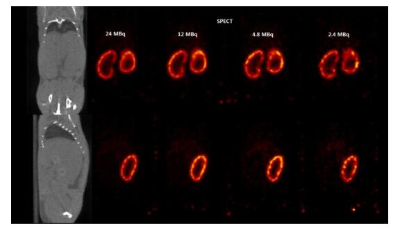圖 7. 不同放射性劑量的 SPECT 圖像對(duì)比, 可以低劑量成像【1】 。