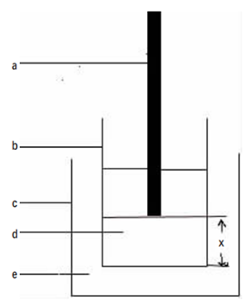 a:鈦探針(直徑1.50cm);b:燒杯(直徑3cm,高7.5cm);c:大燒杯(直徑7cm,高90cm);d:脂質(zhì)體混懸液;e:冰水;x:探針與燒杯底部距離