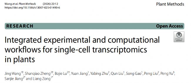 Wang J, Zheng S, Lu B, et al. Integrated experimental and computational workflows for single-cell transcriptomics in plants. Plant Methods. 2026;22(1):12. Published 2026 Jan 3. doi:10.1186/s13007-025-01490-6
