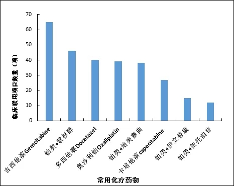 PD-1抑制劑與部分常用化療藥物聯(lián)用臨床項(xiàng)目不完全統(tǒng)計圖