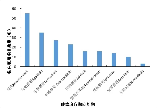 PD-1抑制劑與部分熱門腫瘤靶向藥物聯(lián)用臨床項(xiàng)目不完全統(tǒng)計圖