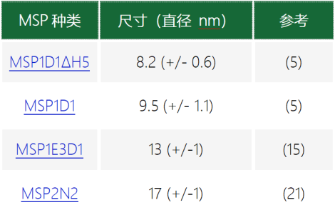 表 2:MSP 蛋白質(zhì)及相關(guān)納米盤尺寸概述