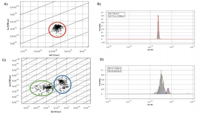 SPRm200能夠生成親和力等溫線圖和動力學(xué)參數(shù)分布,揭示了復(fù)雜的多模式lectin-糖苷相互作用,這是傳統(tǒng)的終點法測量或親和力測量技術(shù)所無法觀察到的。