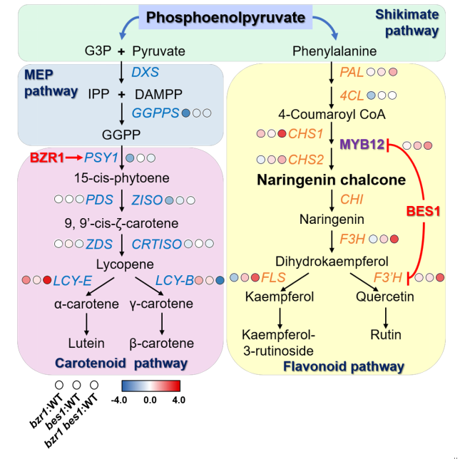 6、SlBES1與SlBZR1在類黃酮/類胡蘿卜素通路中功能分化