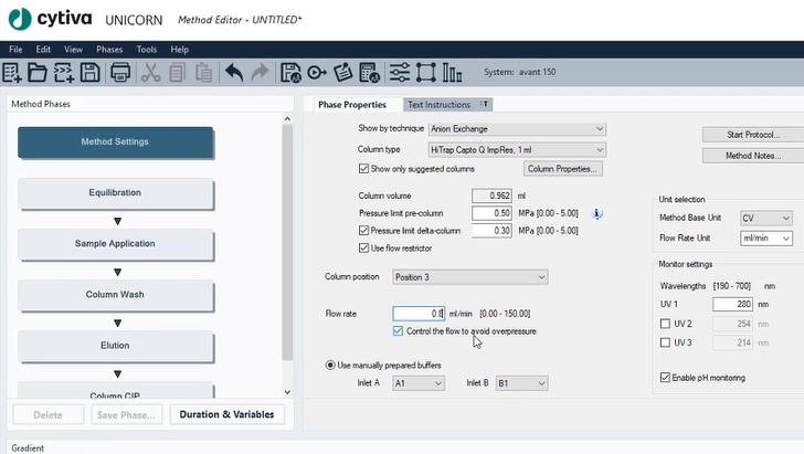 使用UNICORN軟件編輯方法自動運行純化實驗