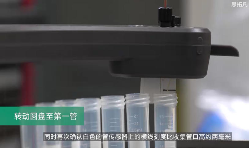 視頻詳細(xì)介紹了F9-R圓形收集器的使用方法,包括插入收集管、確認(rèn)和調(diào)整傳感器位置、調(diào)節(jié)手機臂高度等。
