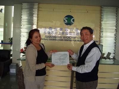 Dr. Shoba 授予上海生物芯片有限公司副總裁楊宏鈞博士認(rèn)證證書(shū)