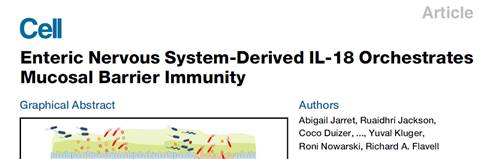 [1] Jarret A., Jackson R., Duizer C., Healy E.M.,Zhao J., Rone J. M.,Bielecki P., Sefik E.,Roulis M.,Rice T., Sivanathan K.N.,Zhou T., Solis A.G.,Honcharova-Biletska H.,Ve´ lez E.,Hartner S.,Low J.,Qu R., Zoete M.R., Palm N.W., Ring A.M., Weber A.,Moor A.E.,Kluger Y.,Nowarski R., Flavell R.A. ,Enteric Nervous System-Derived IL-18 Orchestrates Mucosal Barrier Immunity, Cell 180, 50–63(2020).