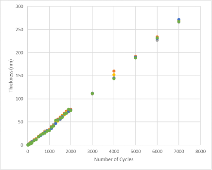 - 厚度與循環(huán)次數(shù)呈線性關(guān)系