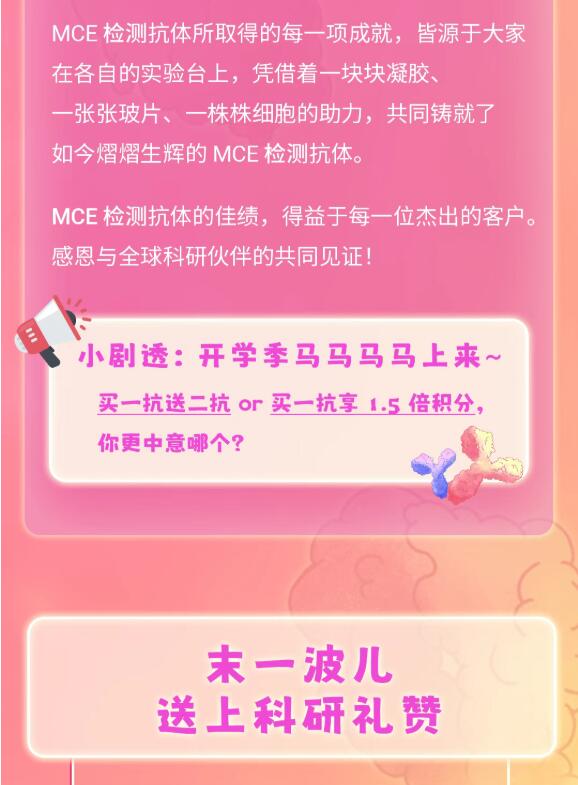 MCE開學(xué)季:購重組蛋白抗體等享好禮,另有集卡兌換
