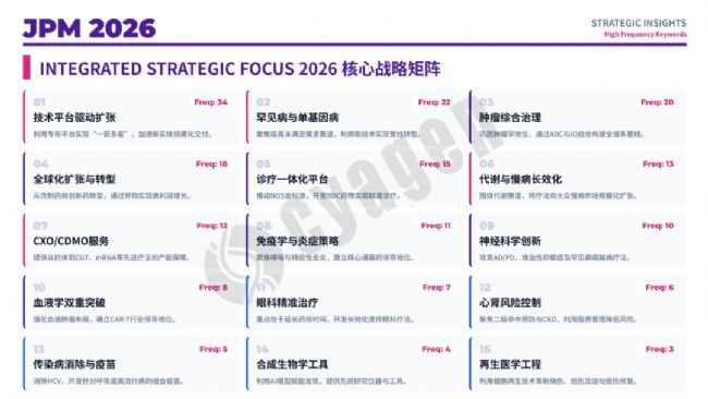 本報(bào)告聚焦于2026年1月在舊金山舉行的第44屆JPM大會(huì),歡迎進(jìn)入本次大會(huì)的深度洞察。不同于泛泛的會(huì)議記錄,我們從數(shù)百家參會(huì)機(jī)構(gòu)中,嚴(yán)選了109家具有行業(yè)顛覆性的核心藥企進(jìn)行系統(tǒng)性分析。這109家樣本涵蓋了全球頂尖MNC、中堅(jiān)力量BioPharma及高增長(zhǎng)Biotech,通過這109份樣本,我們精準(zhǔn)捕捉到了全球醫(yī)藥研發(fā)從資本博弈回歸臨床價(jià)值的底層轉(zhuǎn)型,為您定調(diào)2026年的投資與研發(fā)新坐標(biāo)。