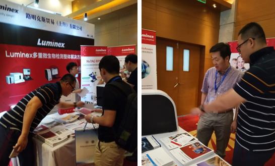 本次會議我們展示了單孔可進行多達50重檢測的MAGPIX液態(tài)懸浮芯片檢測儀,該系統(tǒng)采用96孔板上樣,4.5小時以內(nèi)可以獲得4800個數(shù)據(jù)的高通量檢測,在會場吸引了眾多參會人員的廣泛關(guān)注。Luminex公司市場發(fā)展經(jīng)理趙智賢博士和南區(qū)經(jīng)理陶里軍親臨現(xiàn)場為客戶解答問題!