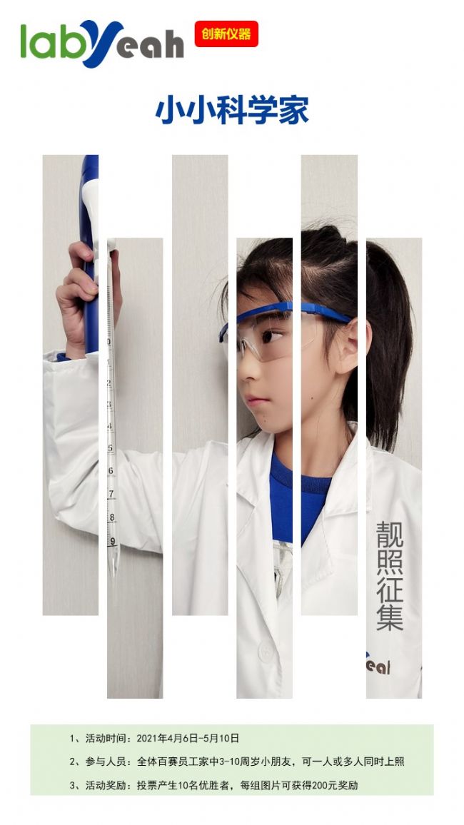 隨著LabYeah四條產(chǎn)品線的全面推出,2021年4月,上海百賽生物特舉辦了一次“小小科學(xué)家”照片征集活動,本次活動共收集到45幅作品,所有作品都有監(jiān)護(hù)人肖像授權(quán),歡迎轉(zhuǎn)發(fā),請勿他用。