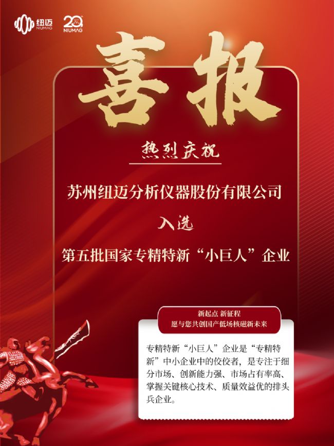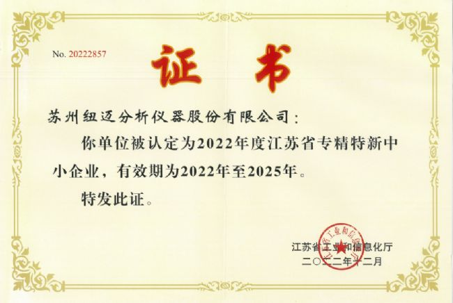 此次能夠入選第五批國家專精特新“小巨人”企業(yè),意味著紐邁分析自主研發(fā)創(chuàng)新及綜合競爭實力得到了認可。值得一提的是,2022年度,紐邁分析也成功入選了江蘇省“專精特新”企業(yè);