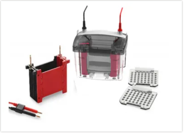 ❶ 可容納 1-4 塊手灌膠或預制膠,1 小時內(nèi)完成多達 4塊小型凝膠電泳