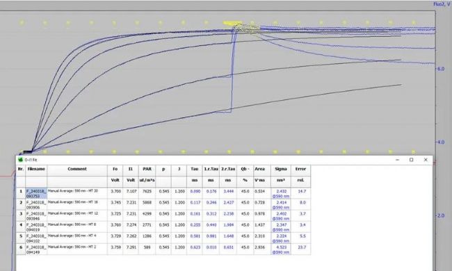 6. Magyar, M., et al. (2024). "Effects of lipids on the rate-limiting steps in the dark-to-light transition of Photosystem II core complex of Thermostichus vulcanus." Frontiers in Plant Science 15: 1381040. [MULTI-COLOR-PAM]
