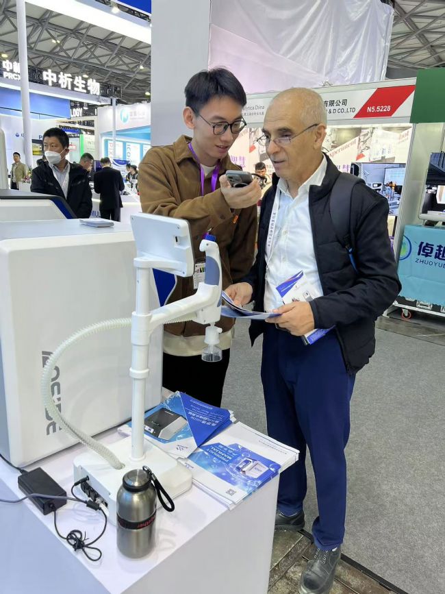 位于N5館5130號的奧思德儀器展位,那充滿科技藍(lán)的色彩格外引人注目,半月型的藍(lán)波頂,水滴狀的LOGO牌,以及展柜上碩氣的實(shí)驗(yàn)室超純水機(jī),吸引了眾多海內(nèi)外行業(yè)專家、用戶駐足參觀與交流。
