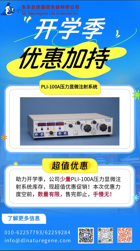 助力開學(xué)季,公司少量PLI-100A壓力顯微注射系統(tǒng)庫存,現(xiàn)超值優(yōu)惠促銷!本次優(yōu)惠力度空前,數(shù)量有限,售完即止,手慢無!