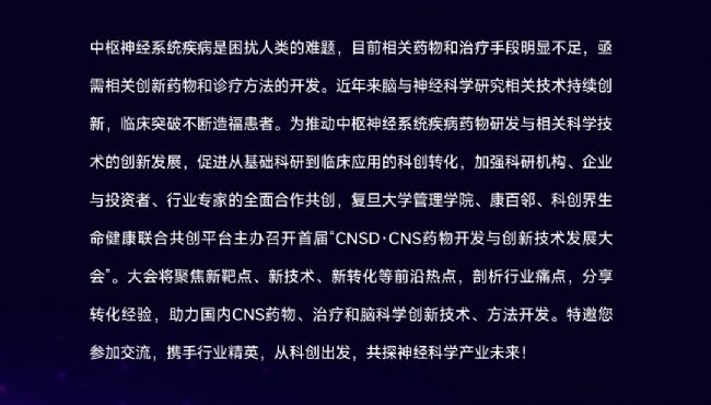 CNSD·CNS藥物開發(fā)與創(chuàng)新技術發(fā)展大會活動議程
