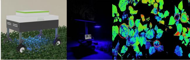 ®葉綠素熒光成像技術,可全自動、非損傷、高通量、原位檢測植物形態(tài)、光合生理、脅迫與抗性、果實成熟度及損傷等指標,支持異地遠程控制與實時回傳、全自動航線規(guī)劃、全天候監(jiān)測,可靈活擴展多種傳感器;從左至右依次為:溫室中的FluorTron