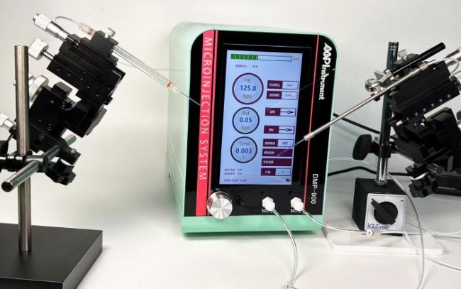 本注射泵的注射壓力、平衡壓力、輸入氣壓以及注射時間通過大尺寸高清數(shù)字屏顯示,不僅操作更加直觀,并且可以實現(xiàn)更高的精度。DMP-900數(shù)碼氣壓顯微注射泵可以手動控制注射時間模式、時間定時控制模式外,還可以實現(xiàn)負壓吸入樣品,負壓吸附固定被注射的樣品等功能,相比于其他類型顯微注射儀,本注射泵系統(tǒng)增加了更多的應用可能。