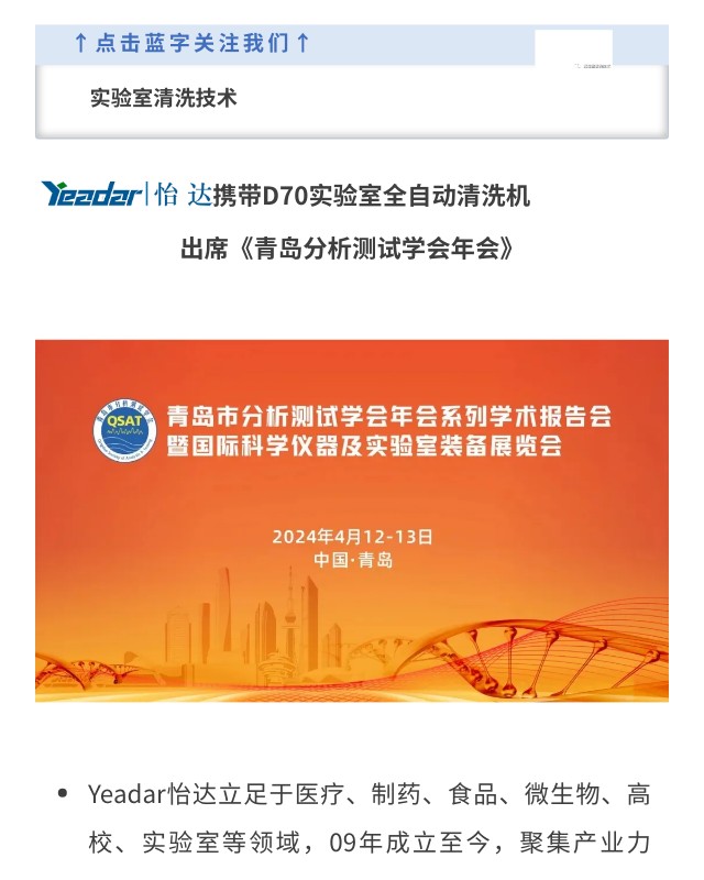 展會預告—嘉信怡達攜D70洗瓶機亮相青島科儀器展