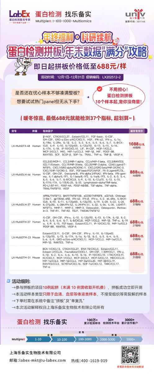 > 促銷 > 樂備實(shí)蛋白檢測(cè)拼板、趨化因子檢測(cè)多重年終福利開啟