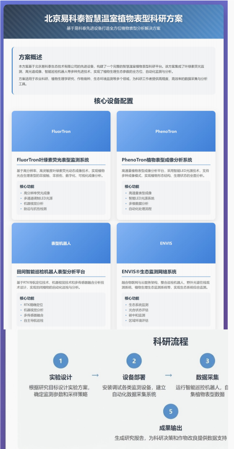 正如 AI 在海報中所總結(jié)的,一套完善的智慧溫室植物表型科研方案,離不開高精度、自動化儀器的支撐。借此機會,我們也為大家詳細介紹海報中出鏡的這幾款易科泰“科研利器”: