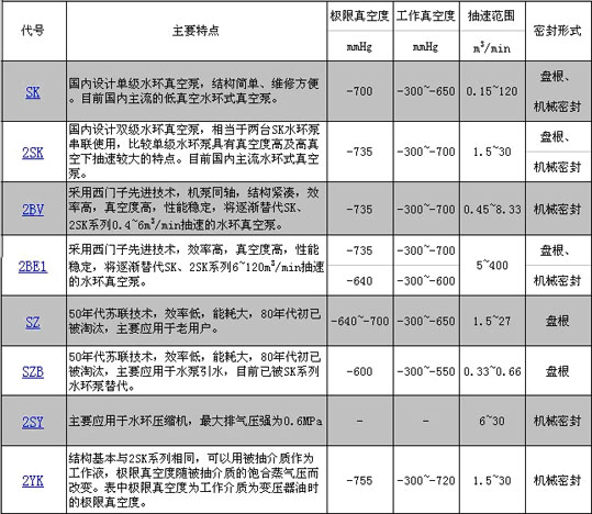 面對各種型式的水環(huán)式真空泵及壓縮機(jī),我們特將其各自特點收集如下,以利于用戶選型 :
