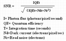 從中可以看到,QE值,讀出噪聲和暗噪聲是影響SNR的主要因素,單純強(qiáng)調(diào)任何一個(gè)方面都不具有實(shí)際意義。