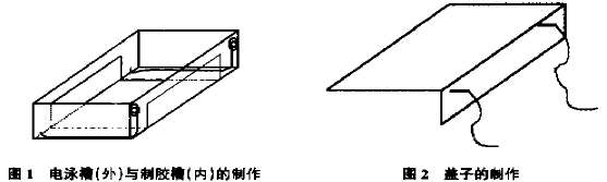 瓊脂糖凝膠電泳槽的制作分為4部分:電泳槽的制作;制膠槽的制作;梳子的制作和蓋子的制作。制膠槽和梳子在數(shù)量和規(guī)格上可以根據(jù)實(shí)際工作需要適量增減,以便于實(shí)驗(yàn)操作。