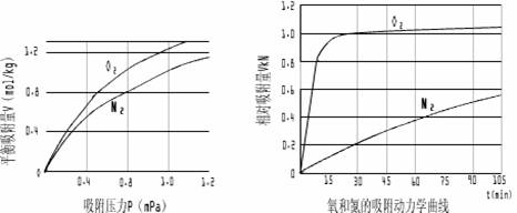 注:隨著吸附壓力的增加,O2、N2的吸附量都增加,但是O2的吸附增加量遠遠高于N2。