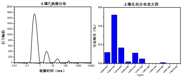 土壤T2分布圖以及土壤的孔徑分布直方圖 |